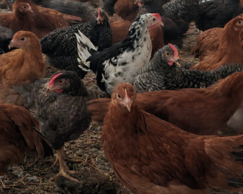 Kury z kompletem szczepień ( do wglądu) pod stałym nadzorem Powiatowego Lekarza Weterynarii. Chowane na naturalnych paszach ( możliwość zakupu również paszy.