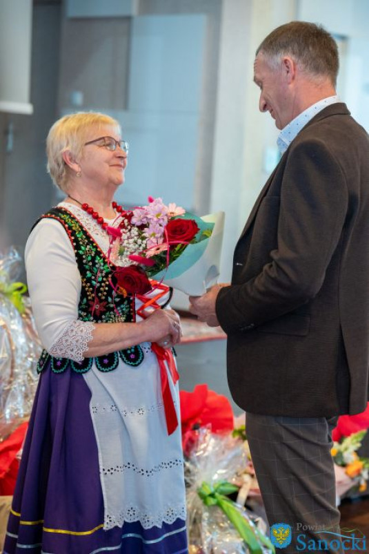 Starosta Sanocki Robert Pieszczoch przekazał na ręce przedstawicielek KGW gratulacje oraz okolicznościowy podarunek, wyrażając uznanie za wieloletnią aktywność i zaangażowanie.